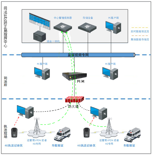 1、建设全市统一的司法移动执法指挥调度系统,包括前端司法所移动执法终端、数据管理中心、存储、车载取证系统。